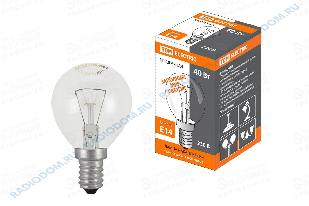 Лампа накаливания шар G45 40Вт 220В E14 TDM ELECTRIC
