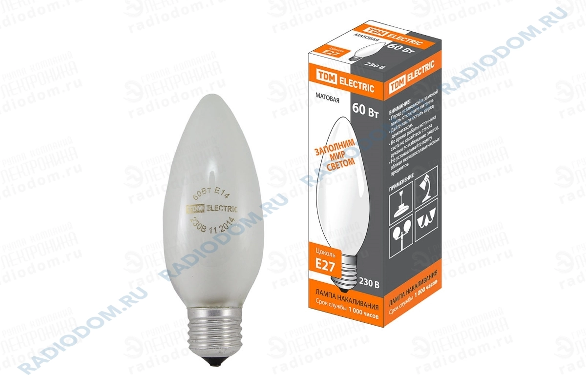 Лампа накаливания свеча C35 60Вт 220В E27 TDM ELECTRIC