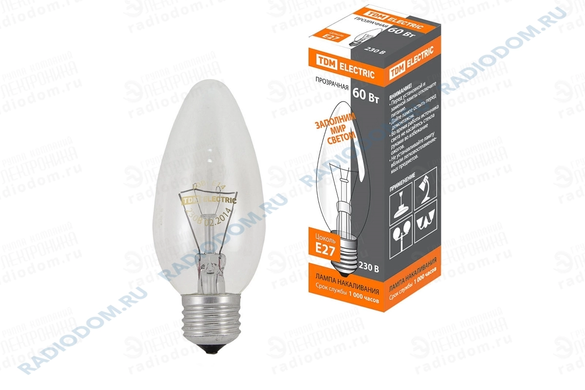 Лампа накаливания свеча 60Вт 220В E27 TDM ELECTRIC