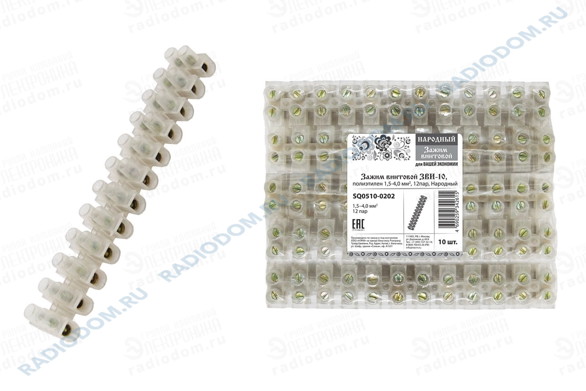 Колодка клеммная ЗВИ-10 4мм Народный SQ0510-0202 TDM ELECTRIC