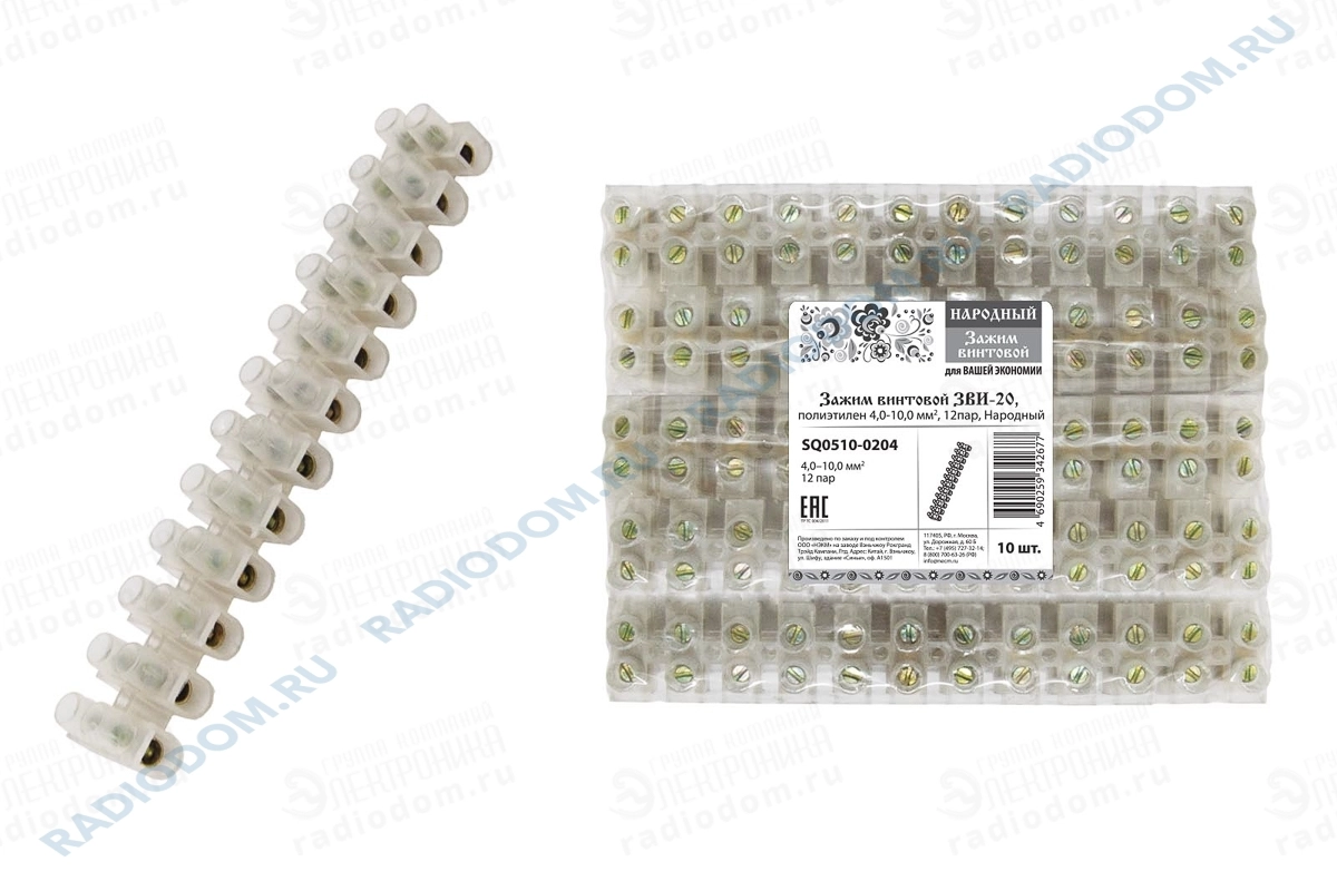 Колодка клеммная ЗВИ-20 4мм Народный SQ0510-0204 TDM ELECTRIC
