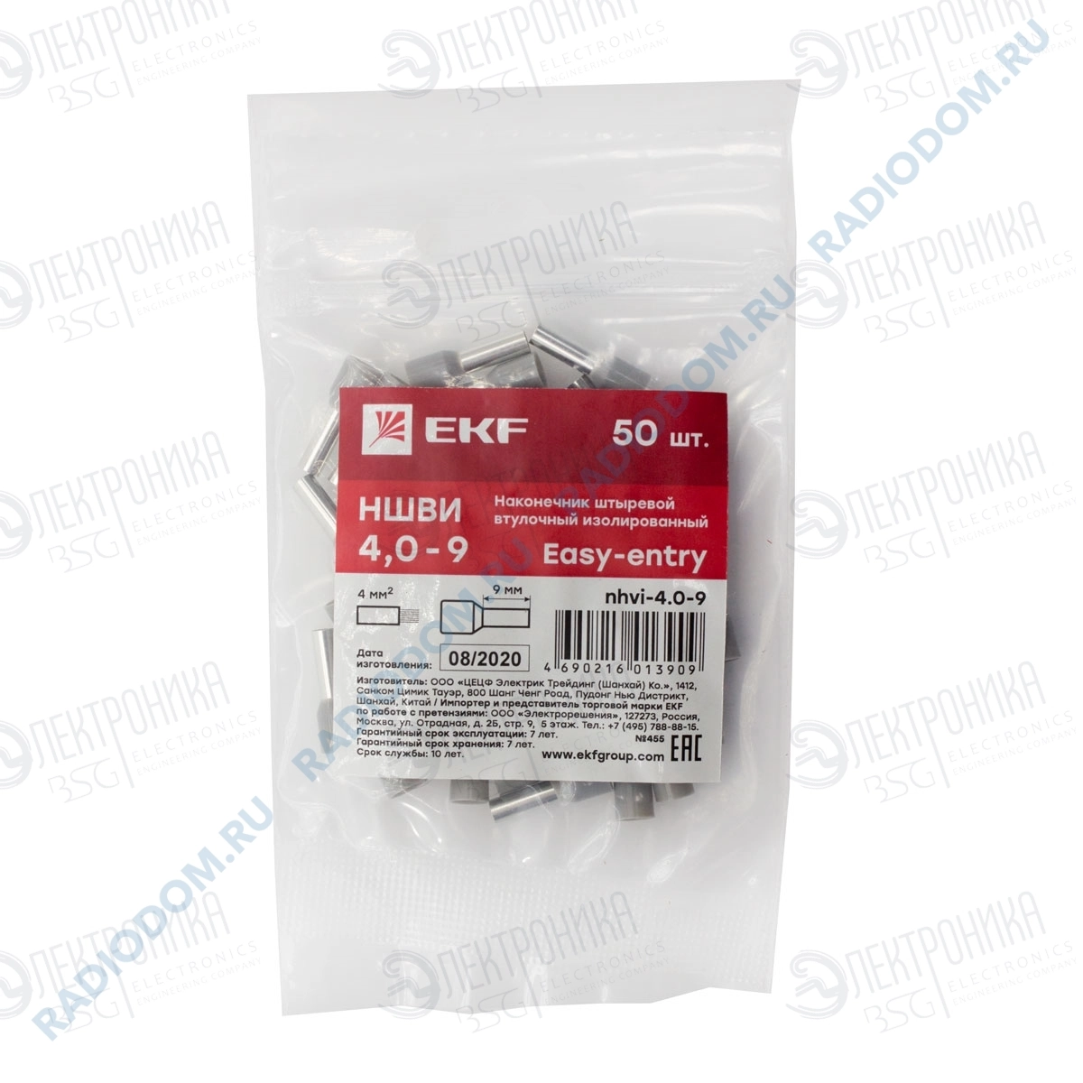 Наконечник штыревой НШВИ 4,0-9 (50шт) серый EKF PROxima