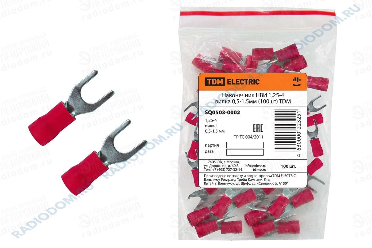 Наконечник НВИ 1.25-4 вилка 0.5-1.5мм красный TDM ELECTRIC SQ0503-0002