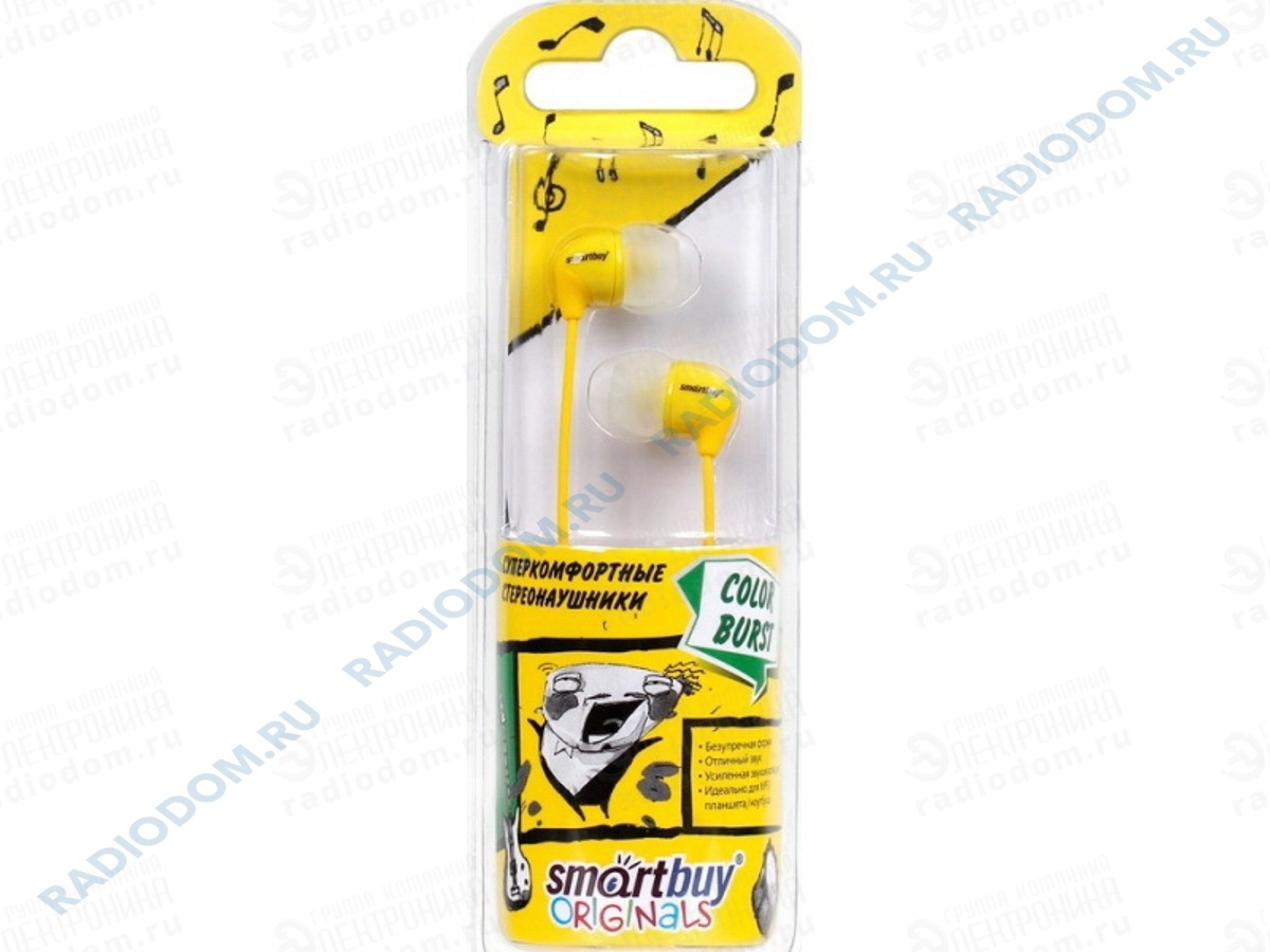 Для тех, кто не представляет свою жизнь без музыки, мы представляем стильные недорогие внутриканальные наушники SmartBuy Color Burst SBE-5700. Вы можете купить наушники SmartBuy Color Burst SBE-5700, совместимые с мобильными устройствами, и подключать их к смартфону, планшету или плееру для прослушивания любимых треков. Невероятно низкая цена, стильное яркое оформление желтого цвета, превосходное качество звучания и эргономичность делают проводные наушники SmartBuy Color Burst SBE-5700 с 1.2 метровым кабелем и сменными амбушюрами желанным и выгодным приобретением.