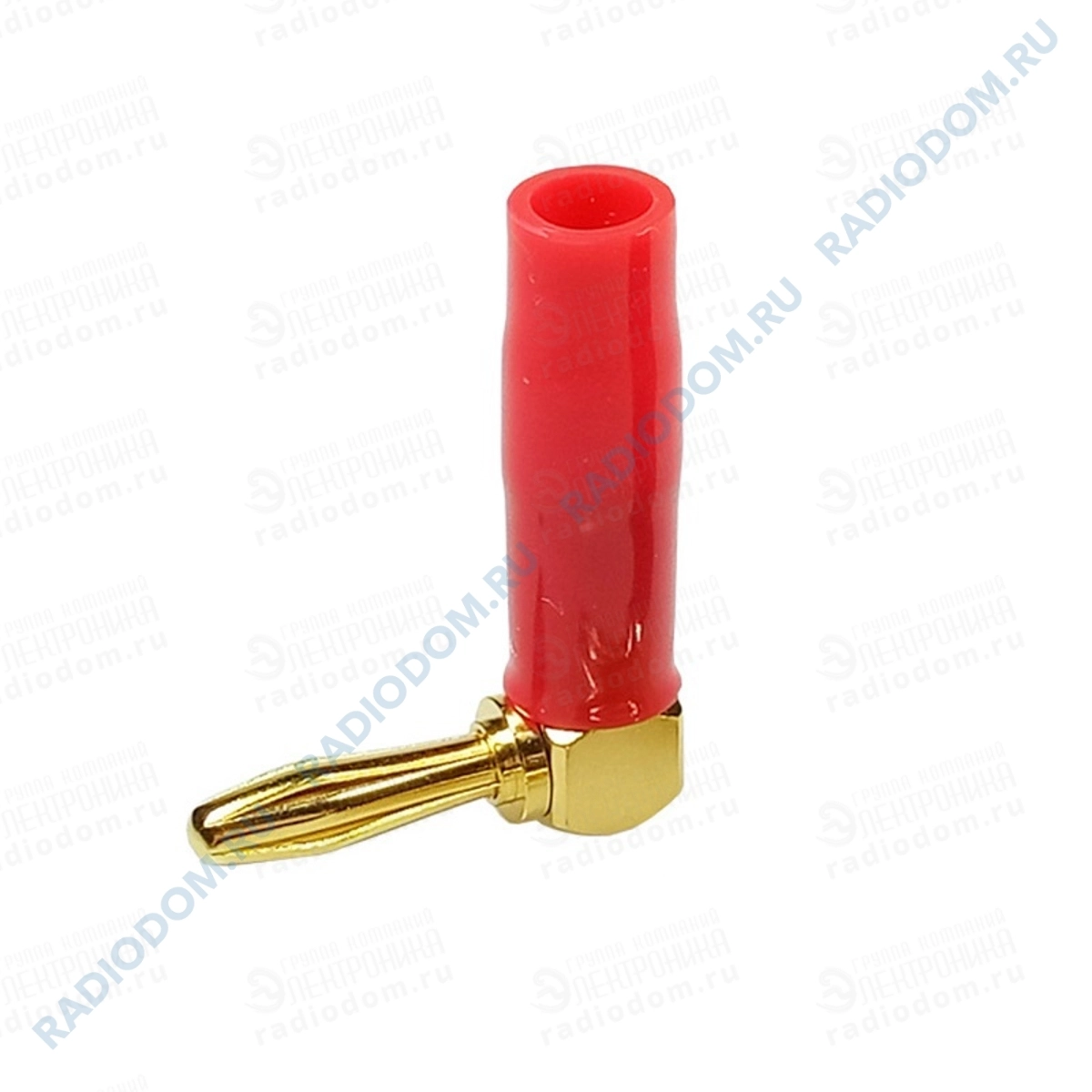 Штекер типа ''банан'' металл позолоченный угловой, красный