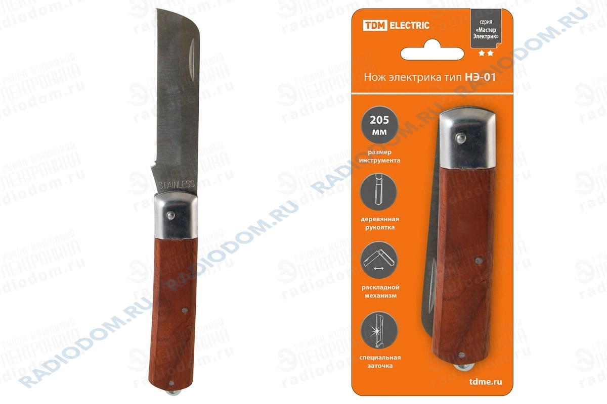Нож электрика с деревянной ручкой, 205мм, НЭ-01 "МастерЭлектрик" TDM ELECTRIC