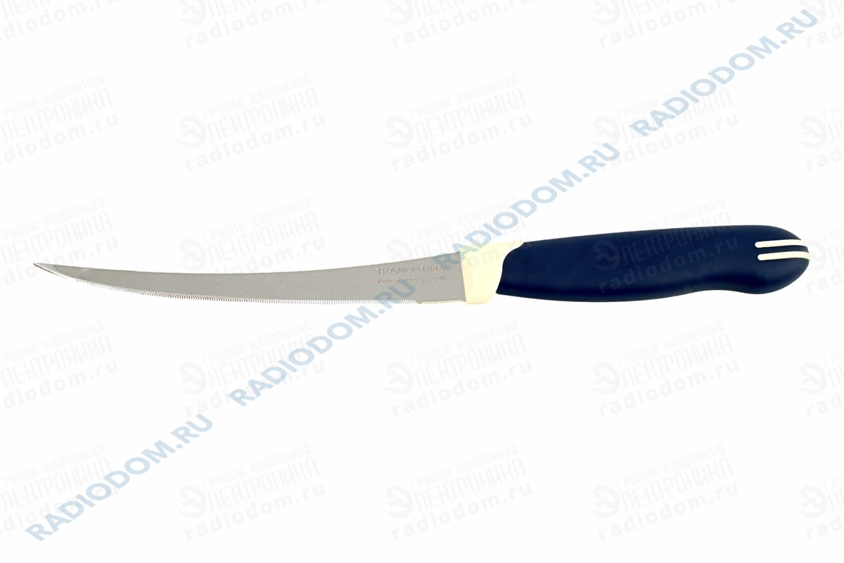 НОЖ длинный, узкий, мелкая насечка, синий, пластиковая ручка
