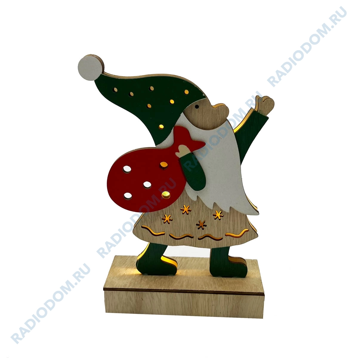 Фигура деревянная с подсветкой "Дед Мороз" 18 см 504-016 Неон-Найт
