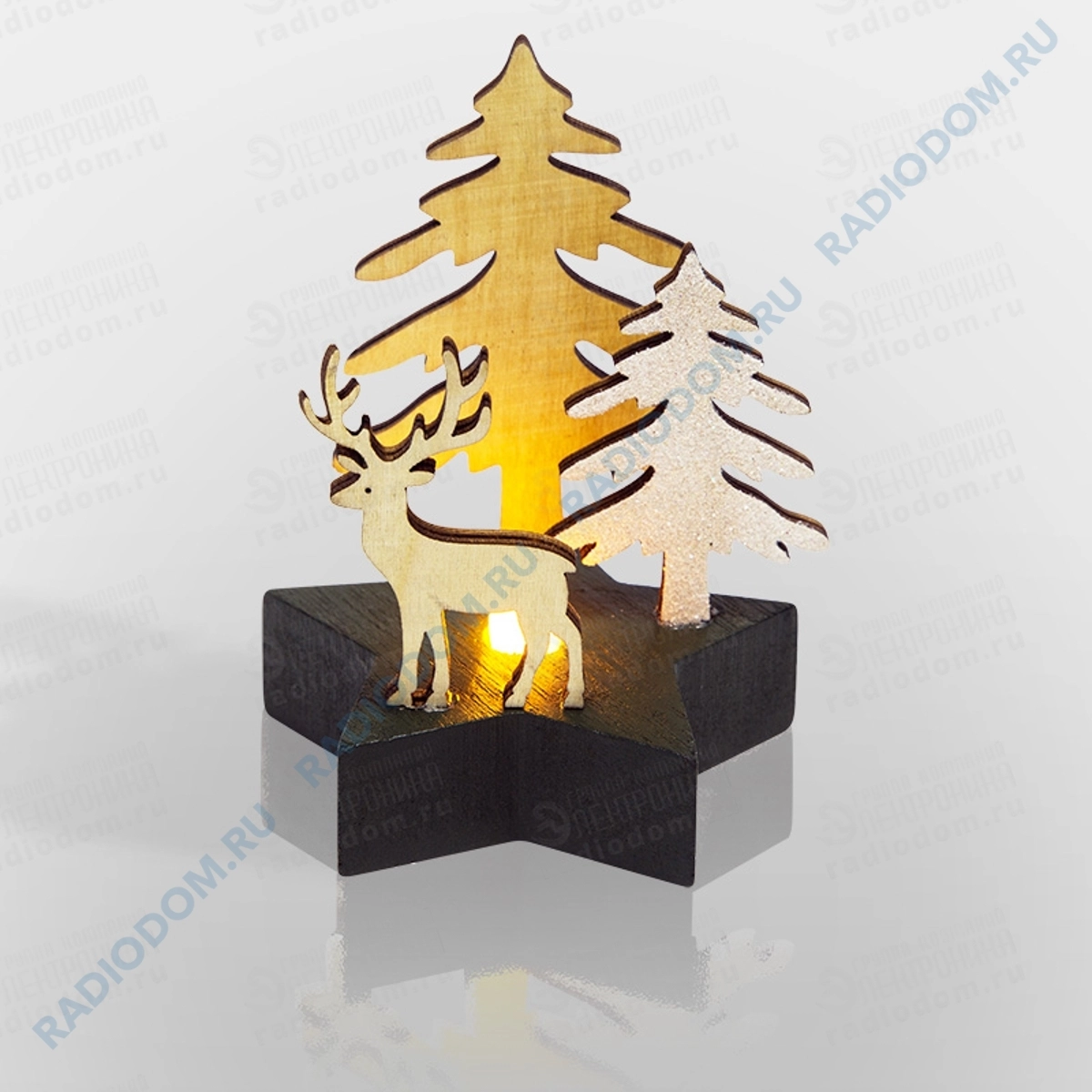 Фигура деревянная с подсветкой "Олень в лесу" 9x8x10см Неон-Найт 504-042