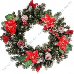 Гирлянда ‘’Венок рождественский‘’ 45см красный H1-09B900610 Волшебная страна