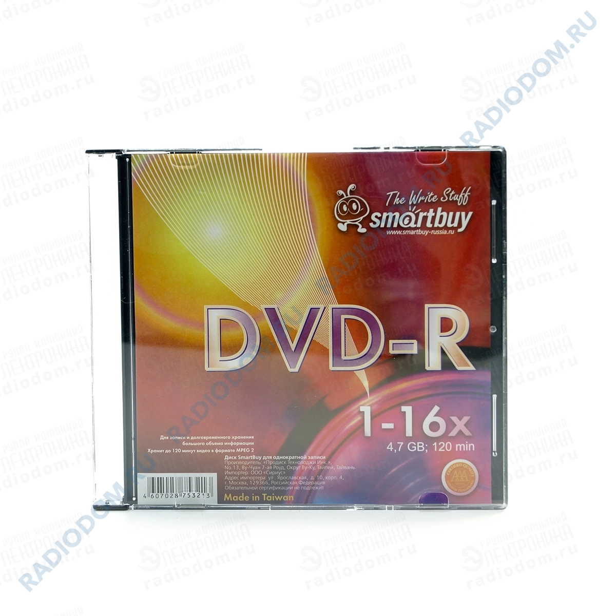 Диск DVD-R 120мин 4,7GB 16x slim case Smartbuy
