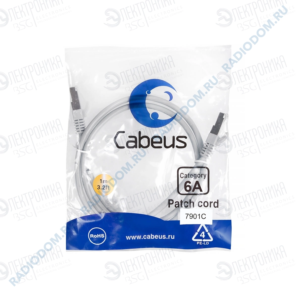 Шнур RJ-45 - RJ-45 патчкорд 1м кат6a, S-FTP экранированный PC-SSTP-RJ45-Cat6a-1m-LSZH Cabeus