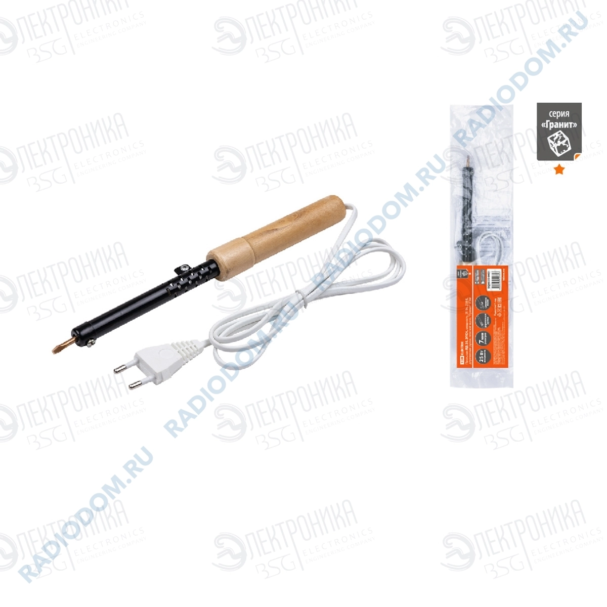 Паяльник ПД-100, ЭПСН, мощность 100 Вт, 230 В, деревянная ручка, плоское жало, "Гранит" TDM SQ1025-0405 Назначение: Электропаяльник предназначен для работы с низкотемпературными припоями при нанесении их на спаиваемые поверхности. Применение: Пайка радиоэлектронных элементов и электрических схем. Лужение соединяемых частей проводников. Скрепления швов во время ремонта металлических изделий. Вспомогательные работы, связанные с точечным разогревом. Преимущества: Сменное жало паяльника – возможность использовать различные типы паяльных стержней для выполнения широкого спектра паяльных работ. Деревянная рукоятка удобно лежит в руке, не выскальзывает и нагревается меньше, чем пластиковая во время продолжительной работы. Быстрый разогрев до рабочей температуры (от 5 до 7 минут). Комплектация: Паяльник электрический. Упаковка - полиэтиленовый пакет с европодвесом и информационным стикером. Руководство по эксплуатации. Паспорт.