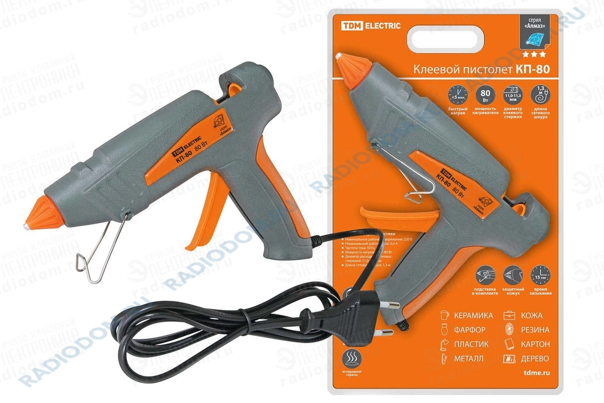 Пистолет клеевой 11мм 80Вт КП-80 с "Алмаз" TDM ELECTRIC