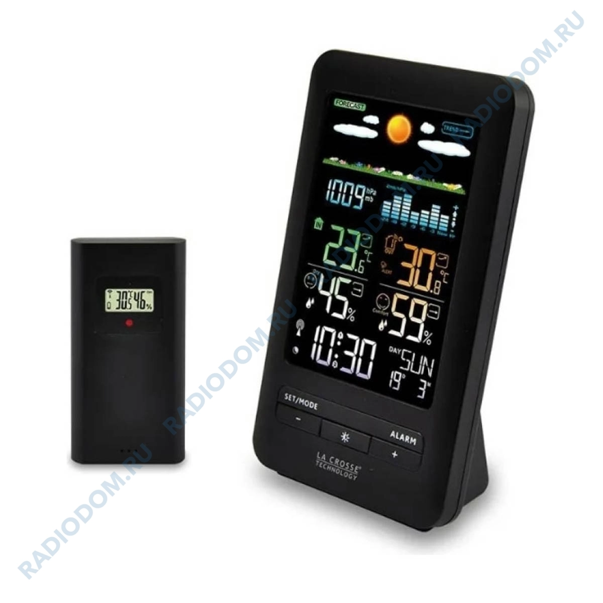 Домашняя метеостанция La Crosse WS6205 предложит вам самую актуальную информацию о погоде, которая может быть вам полезной: показания температуры в комнате и на улице, уровень влажности в доме и на улице, прогноз погоды за завтра, а также атмосферное давление.