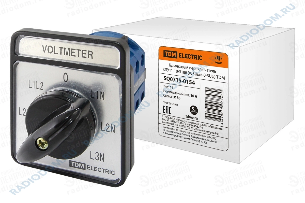 Кулачковый переключатель КПУ11-10/3186, для вольтметра, встраиваемый SQ0715-0154 TDM ELECTRIC