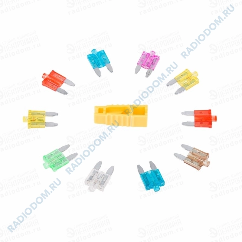 Набор автомобильных предохранителей 5-7,5-10-15-20-25-30А 10шт со световым индикатором с щипцами 80-7122 Rexant