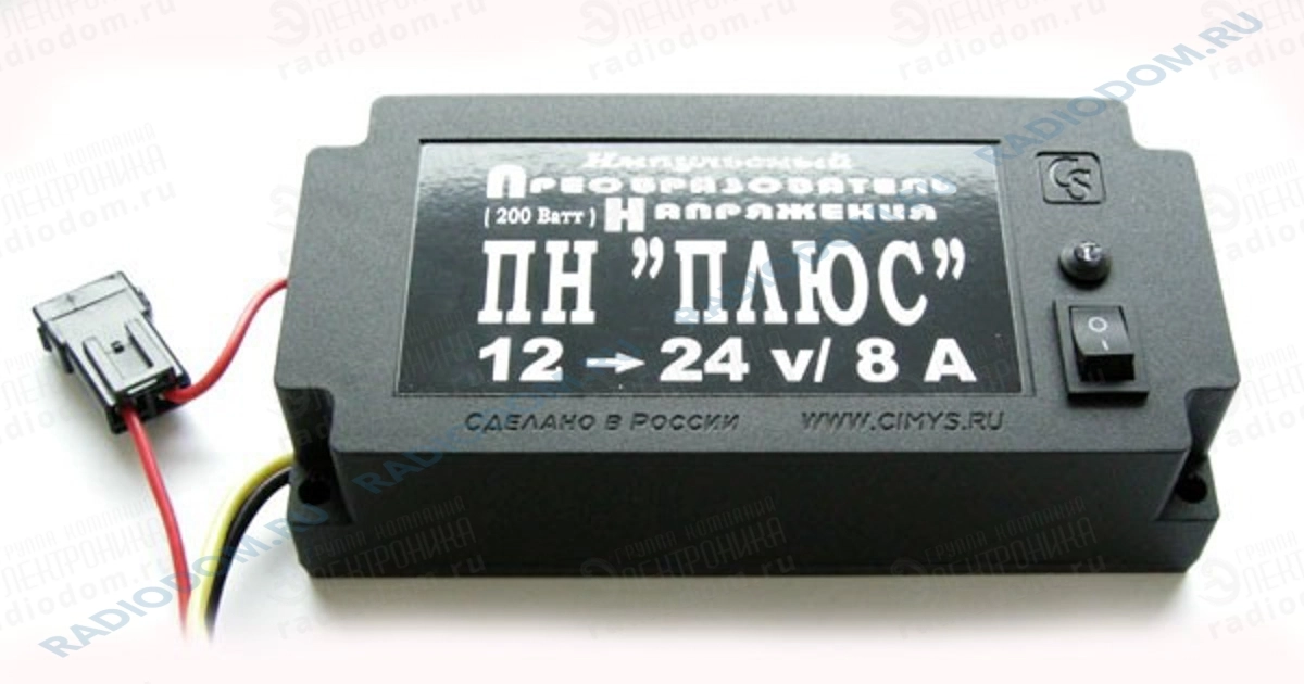 Модель преобразователя ПН-Плюс представлена в черном корпусе. Прибор предназначен для преобразования постоянного напряжения в переменное.