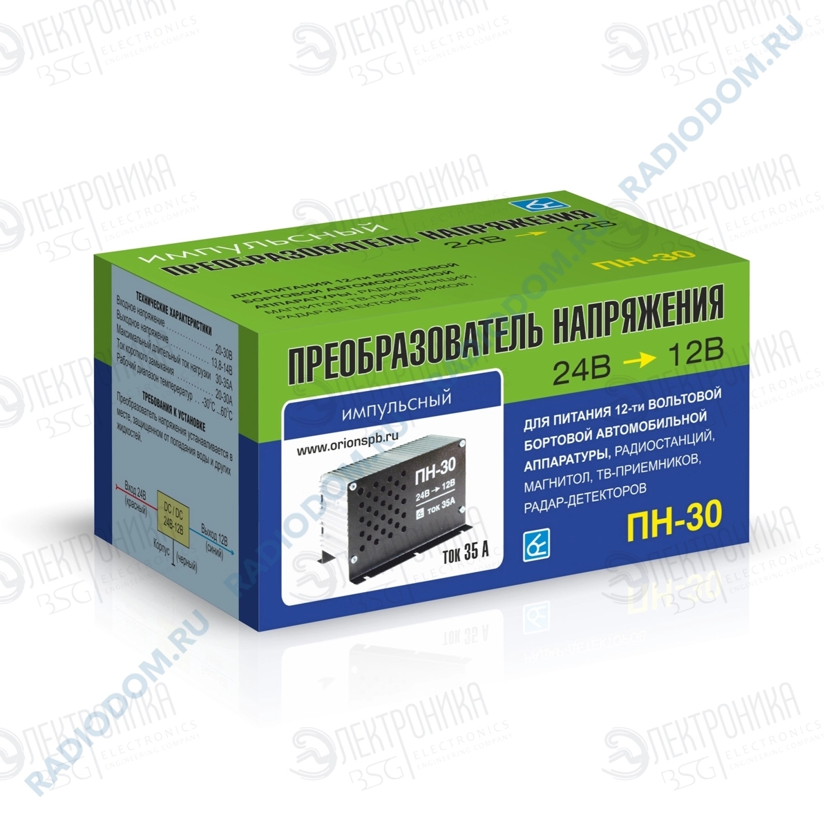 Входное напряжение равно 20-32 В, а выходное – 13,5 В.