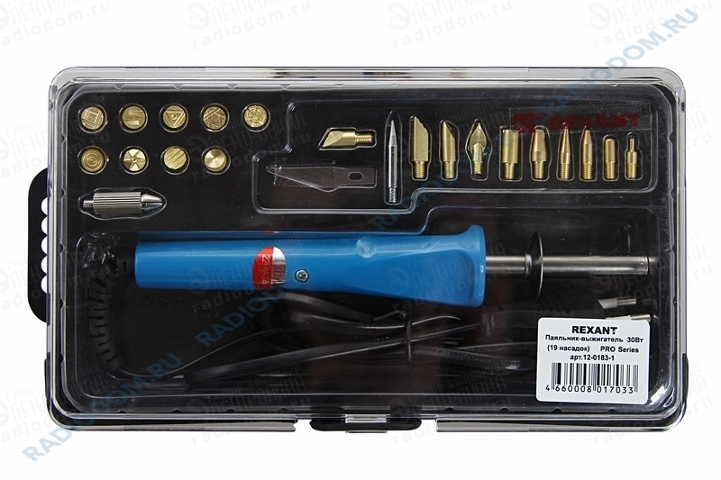 Паяльник-выжигатель 30Вт 19 насадок 12-0183-1 Rexant
