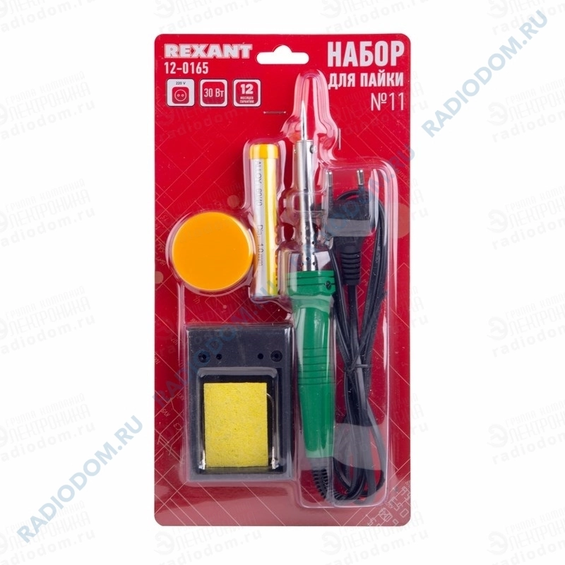 Набор для пайки №11 (паяльник 30Вт, губка, канифоль, подставка, припой) 12-0165 Rexant
