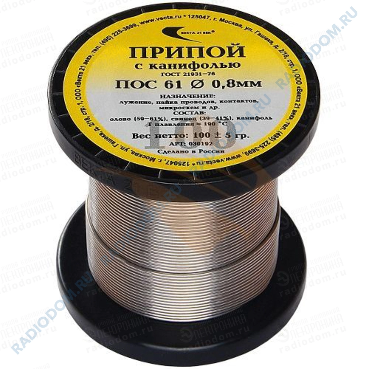 Припой ПОС-61 Ø0,8мм с канифолью 100г