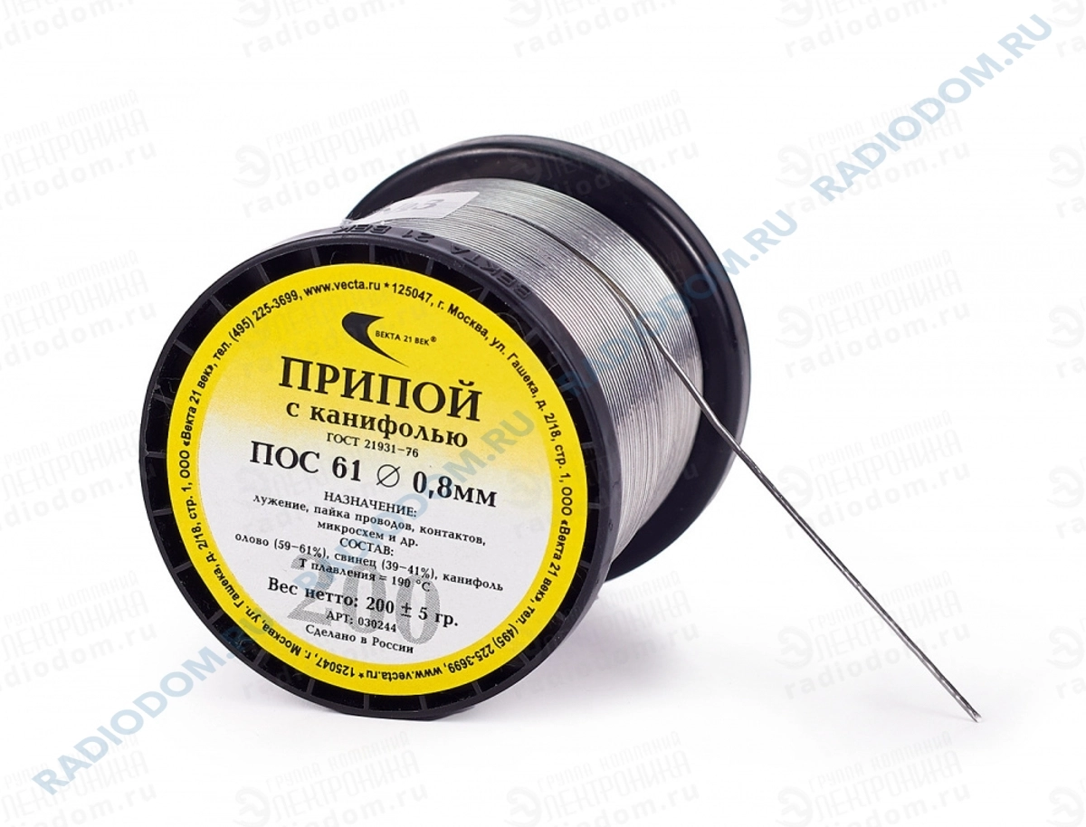 Припой ПОС-61 Ø0,8мм с канифолью 200г