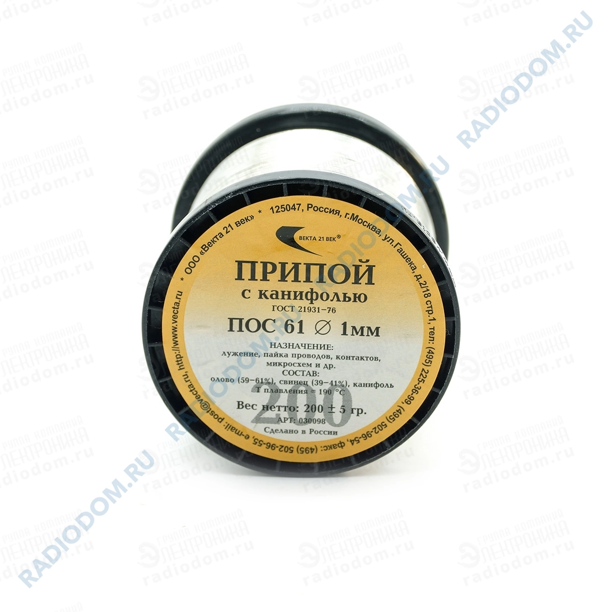 Припой ПОС-61 Ø1,0мм с канифолью 200г
