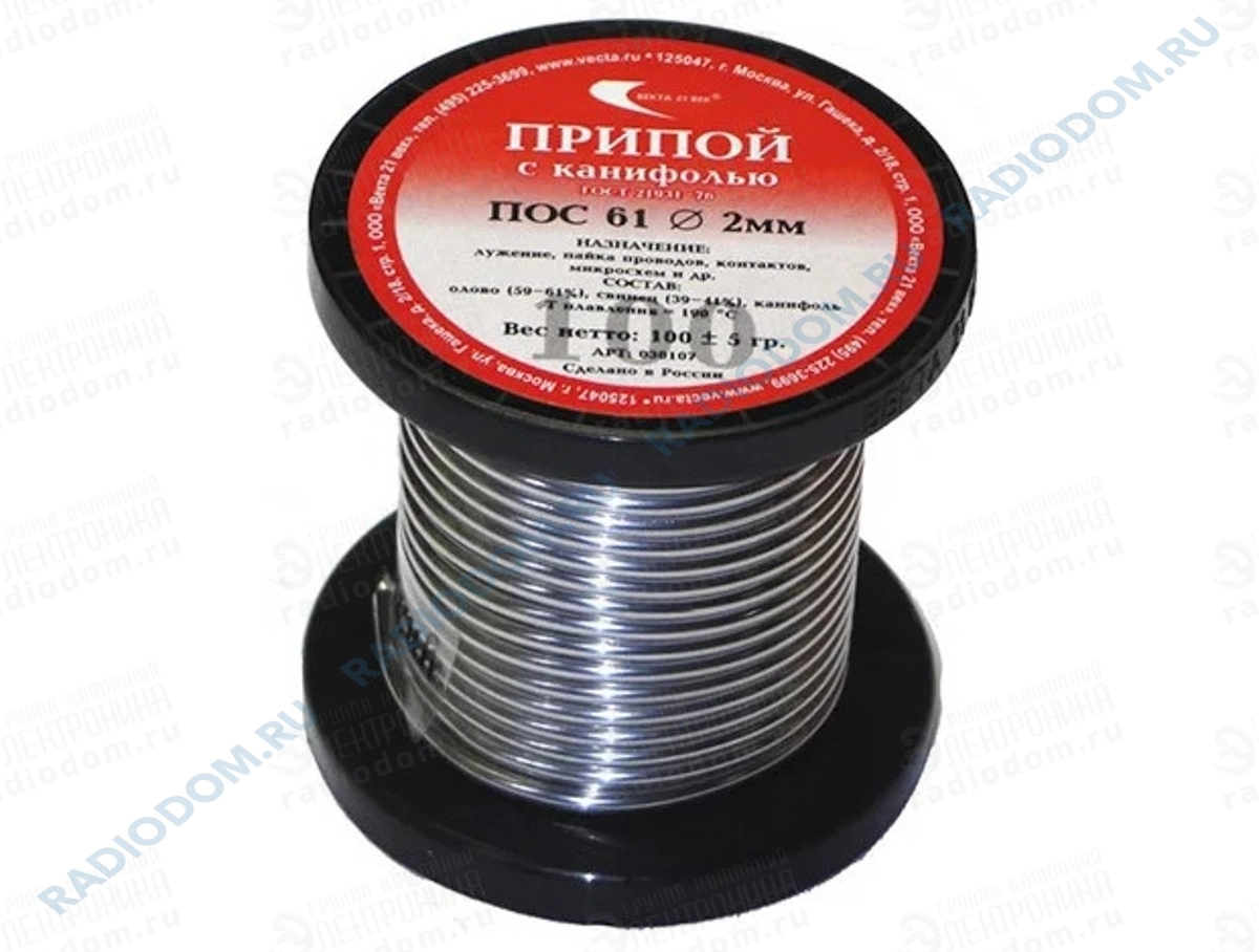 Припой ПОС-61 с канифолью Ø2мм 100г Россия