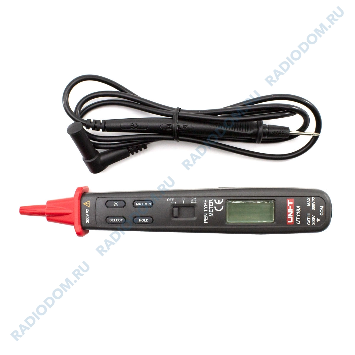 Цифровой мультиметр-пробник UNI-T UT118A измеряет постоянное и переменное напряжение, сопротивление, емкость, и может использоваться для прозвонки цепи и тестирования диодов.