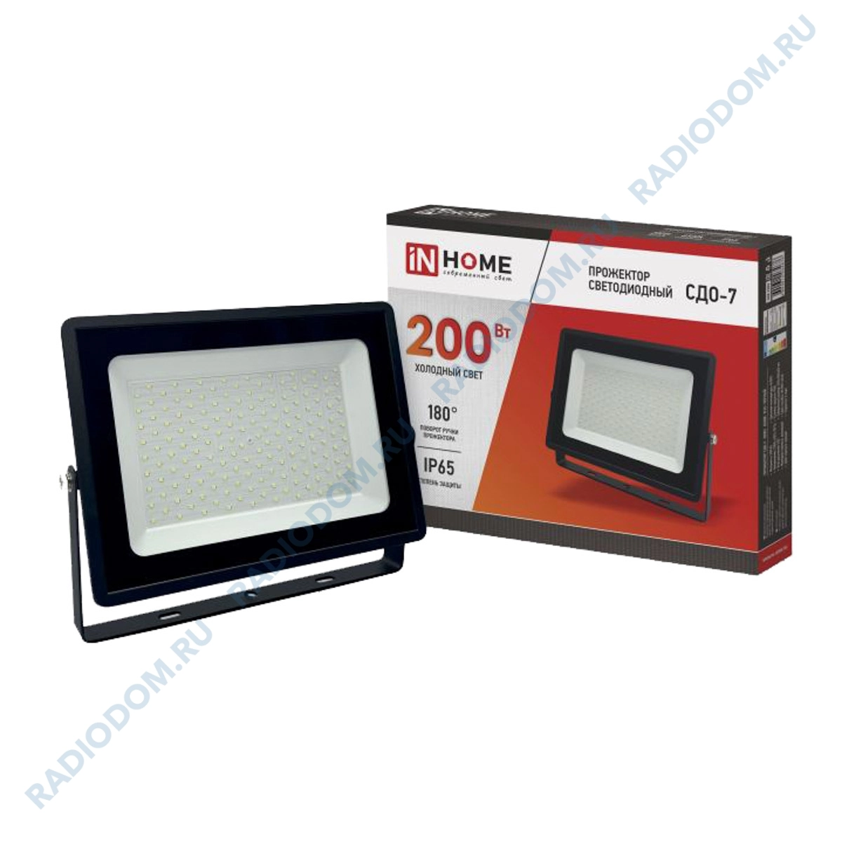 Прожектор светодиодный 200Вт 17000лм 6500K IP65 СДО-7 чер 4690612034676 IN HOME