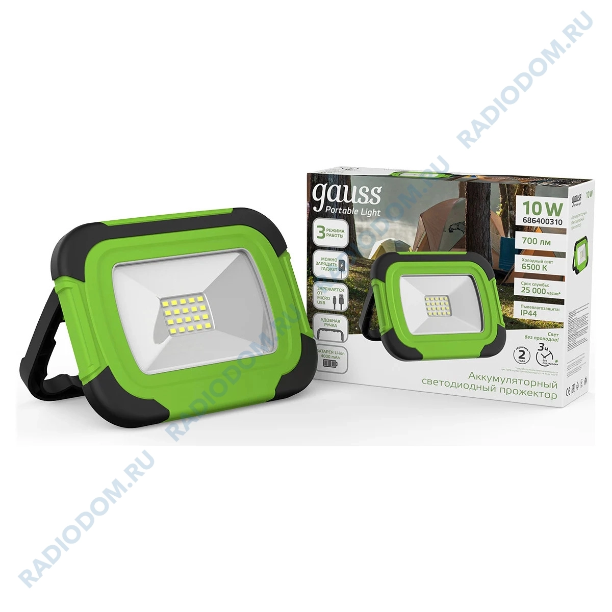 Аккумуляторный светодиодный прожектор предназначен для освещения и дополнительной подсветки в условиях полного или частичного отсутствия электроэнергии. Прожектор с тремя режимами работы и power bank в одном устройстве. Аккумуляторная Li-ion батарея на 4000 mAh обеспечивает непрерывную работу до 3 часов без подзарядки в режиме 100% мощности.