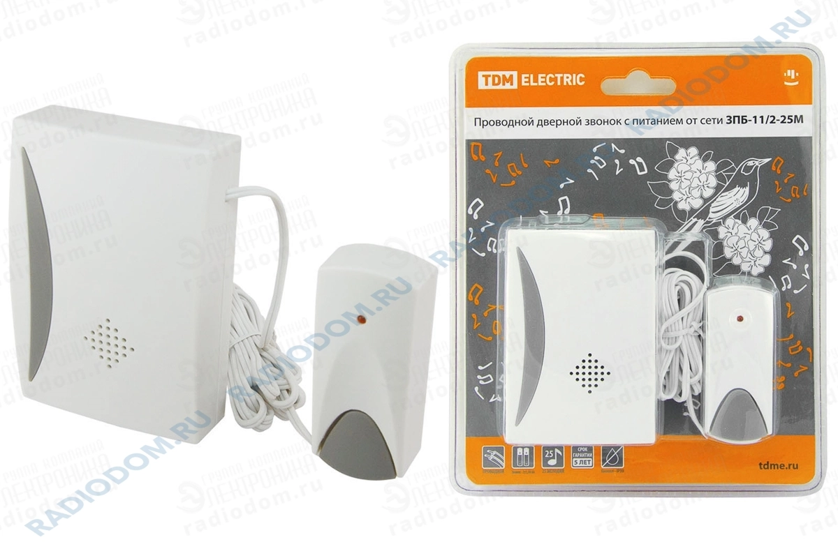 Звонок проводной 25 мелодий на батарейках ЗПБ-11/2-25М TDM ELECTRIC