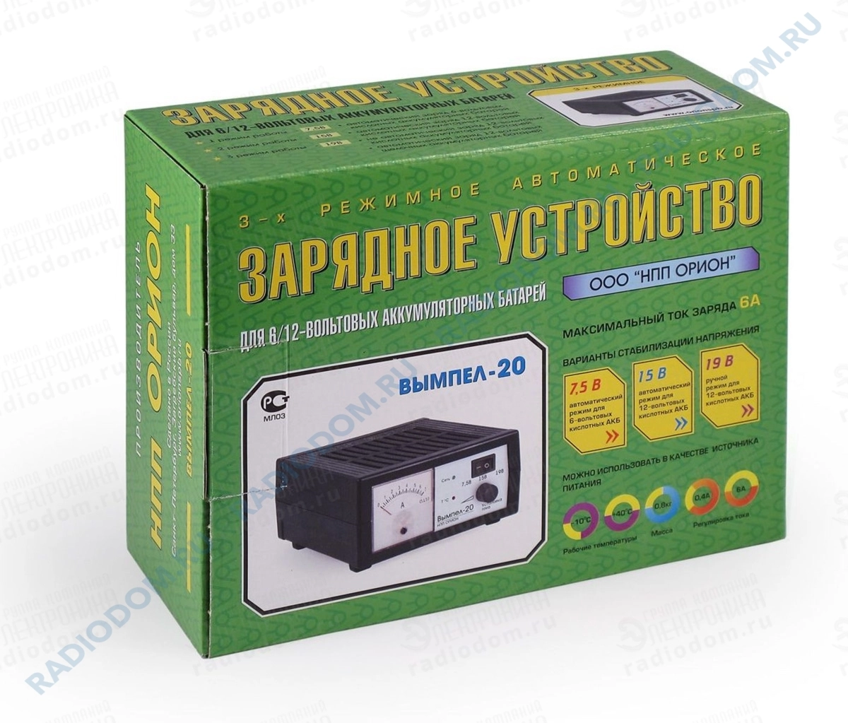 19В - неавтоматический заряд автомобильных аккумуляторов с номинальным напряжением 12В, (возможность заряда щелочных аккумуляторов)