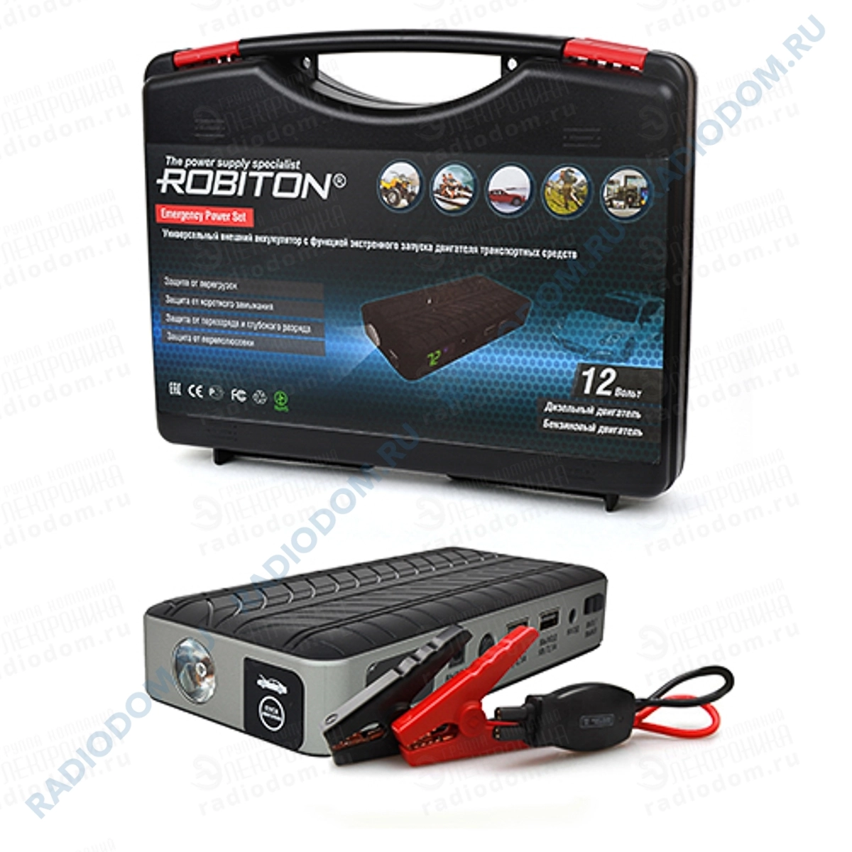 Портативный многофункциональный (пусковой) аккумулятор Powerbank 12000 мАч черный + фонарь Emergency Power Set Robiton