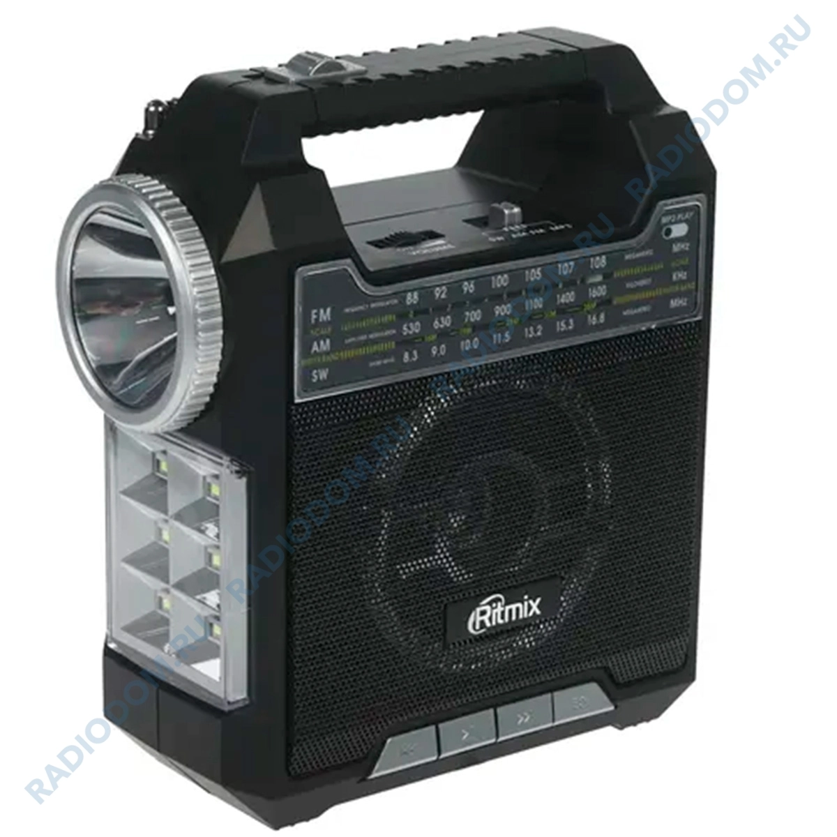 Переносной трёхдиапазонный радиоприёмник, умеющий воспроизводить MP3 и WMA с флешек и карт памяти. Куда бы вы ни отправились, приёмник порадует вас музыкой, позволит зарядить смартфон и спасёт от темноты! Помимо трех диапазонов радиоволн, он может воспроизводить MP3-файлы с флешки или карточки, а также имеет USB-разъём для зарядки других устройств и два фонаря, — один поярче, другой поэкономичнее, — а носить с собой его легко благодаря удобной ручке.