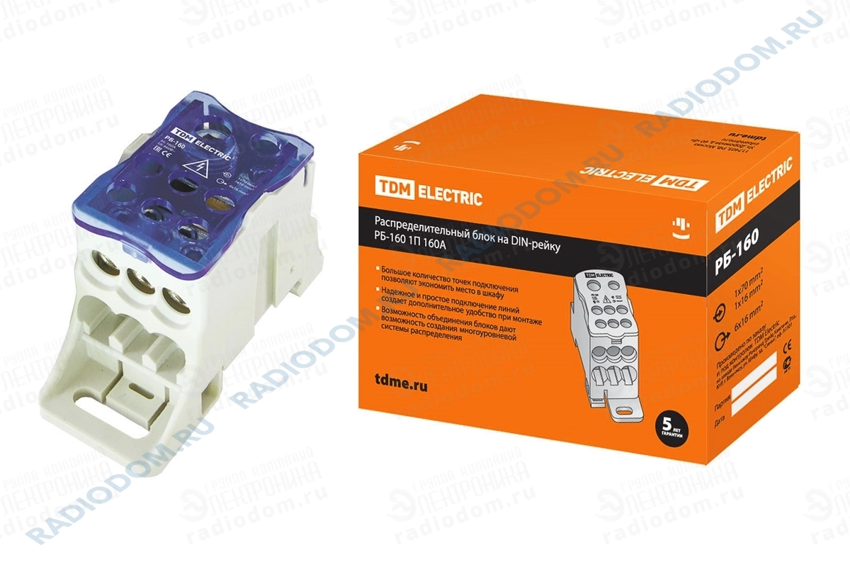 Распределительный блок на DIN-рейку РБ-160 1П 160А (1х70+1x16/6x16) TDM ELECTRIC