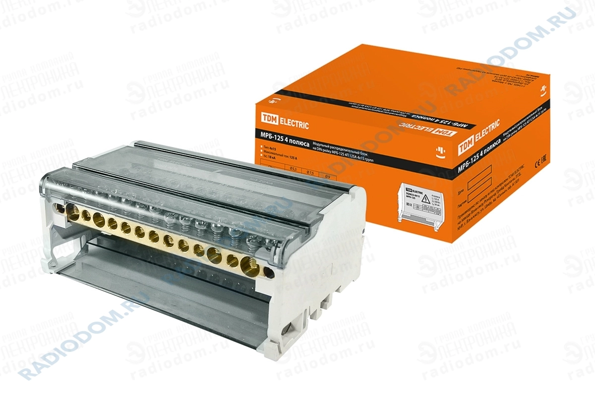 Распределительный блок на DIN-рейку МРБ-125 4П 125А 4х15 групп TDM ELECTRIC