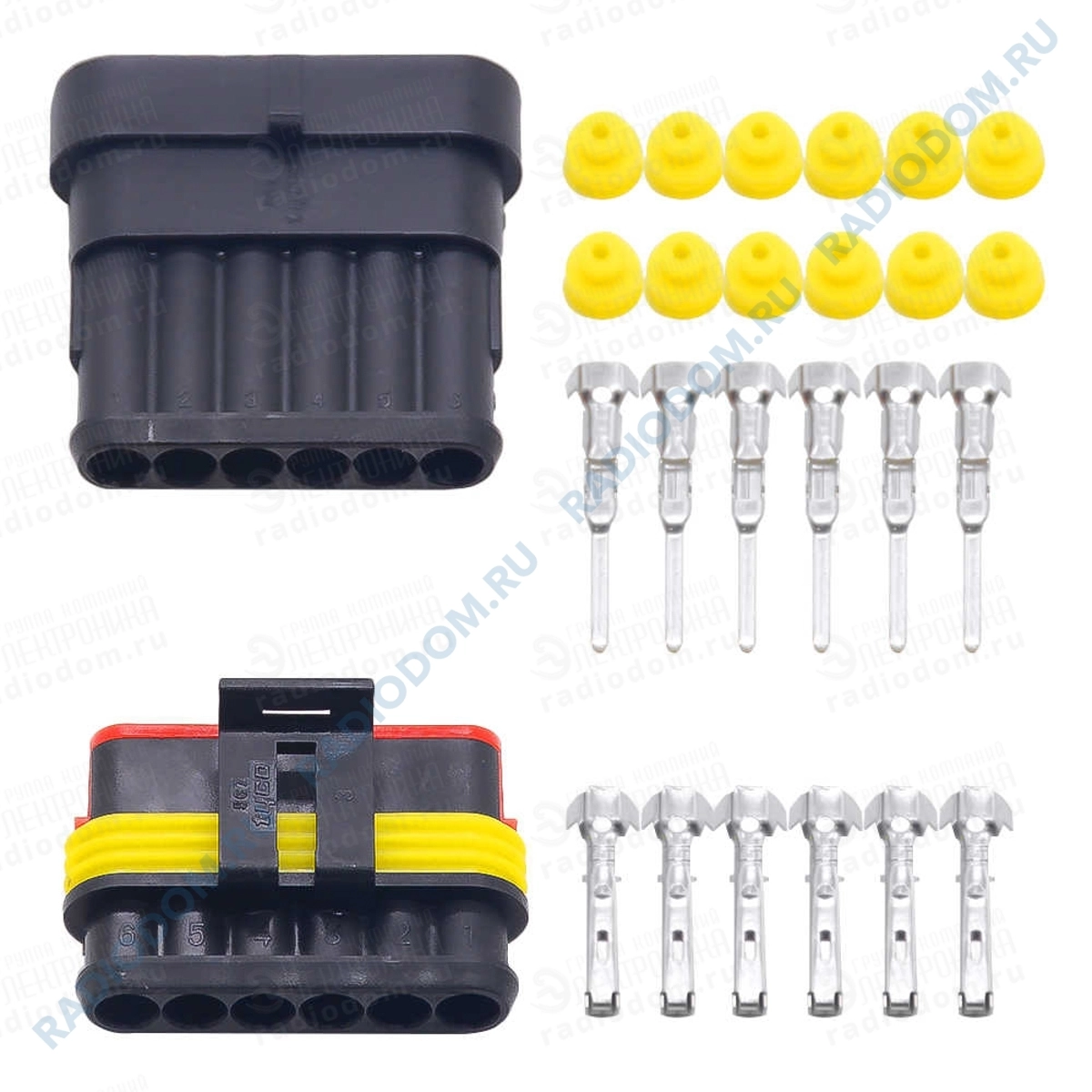 Разъем герметичный 6 контактов гнездо черный DJ7061-1,5