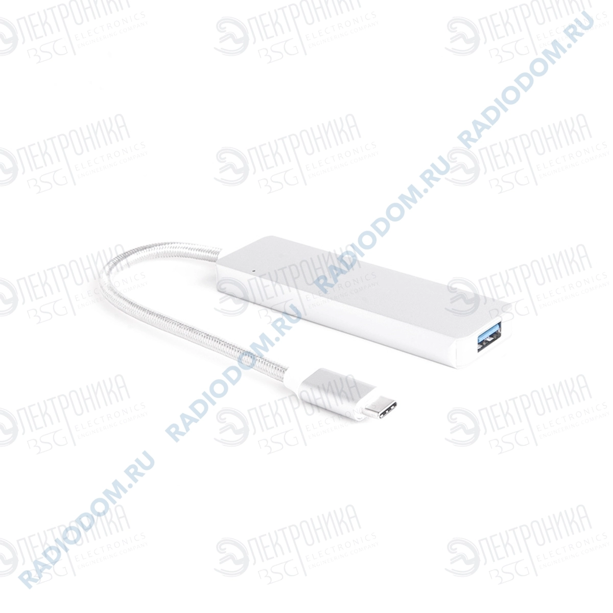 USB-хаб Type-C 3.1 - 4*USB А 3.0, 0,15 м (шт/гн), серебряный Atom