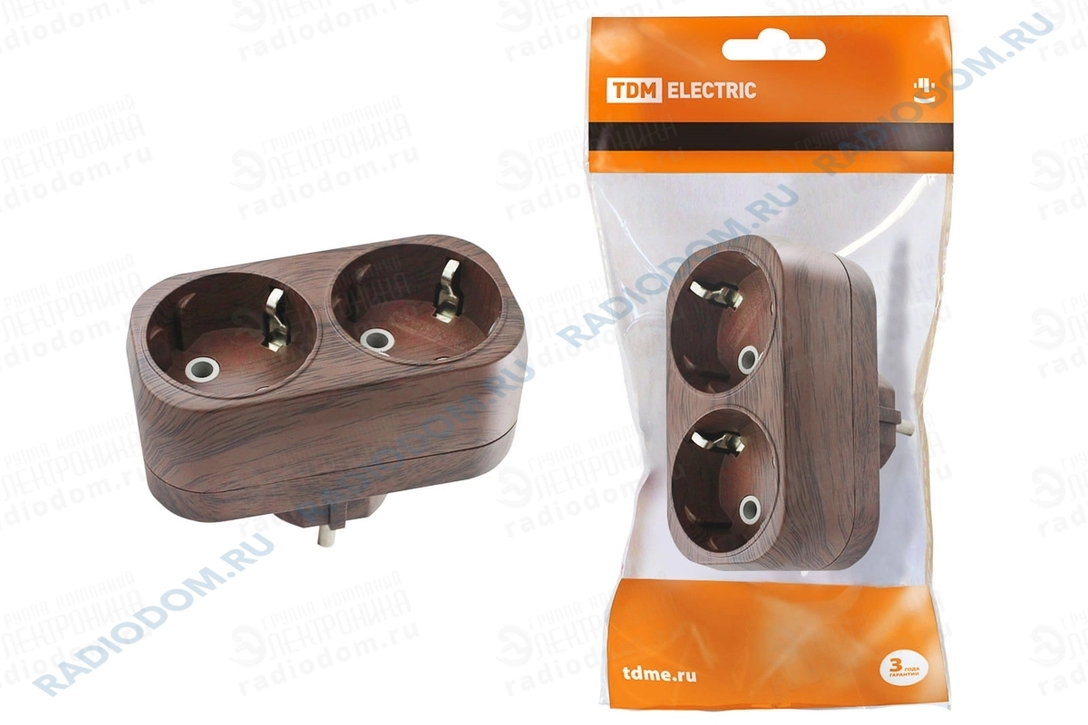 Разветвитель сетевой на 2 розетки с заземлением бук SQ1806-0079 TDM ELECTRIC