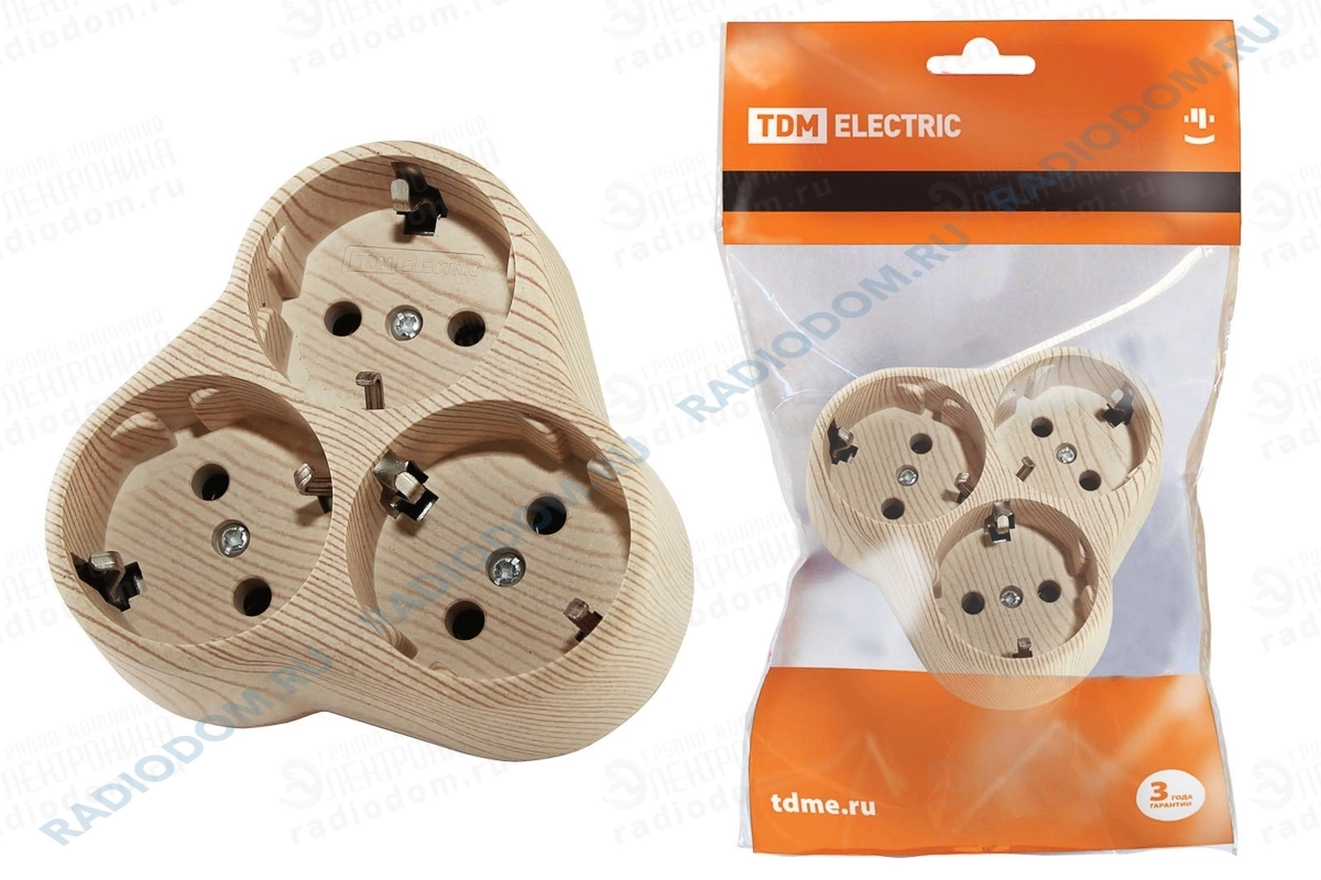 Разветвитель сетевой на 3 розетки с заземлением сосна SQ1806-0077 TDM ELECTRIC