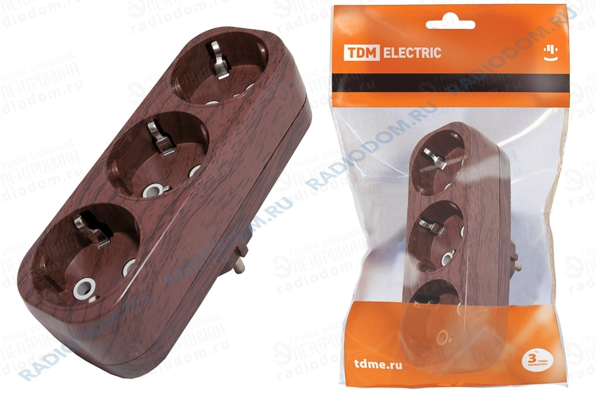 Разветвитель сетевой на 3 розетки бук SQ1806-0080 TDM ELECTRIC
