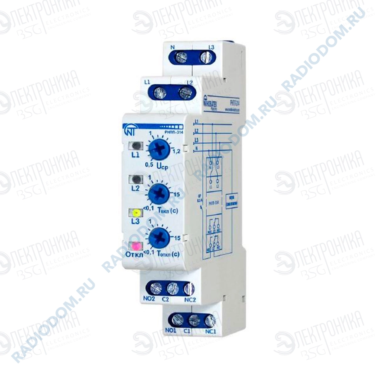 Реле напряжения перекоса и последовательности фаз РНПП-314 3ф Новатек