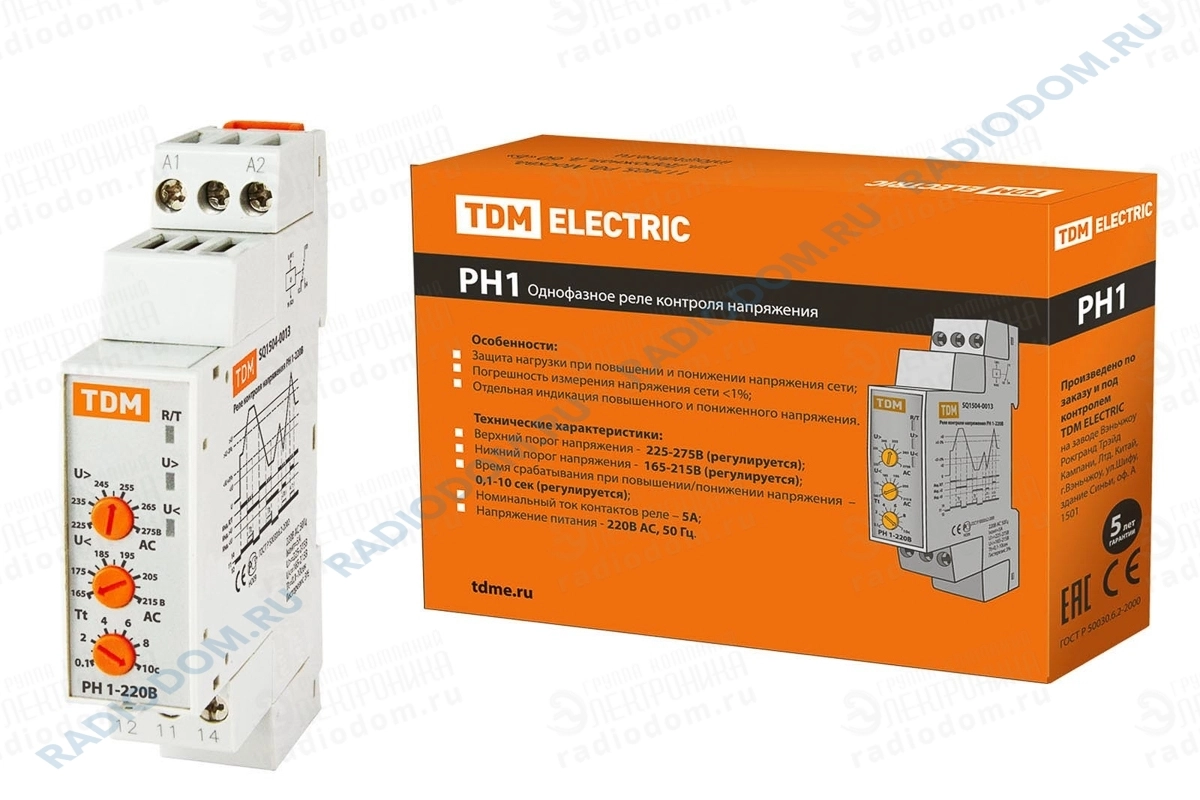Реле напряжения РН1 5А 220В (однофазное) SQ1504-0013 TDM ELECTRIC