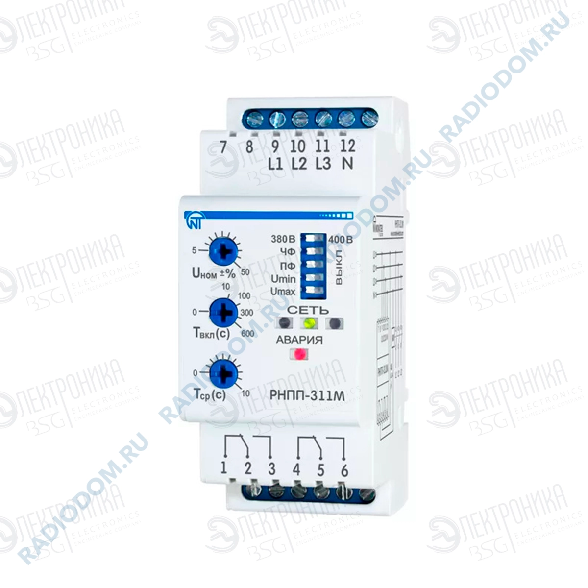 Реле напряжения и контроля фаз РНПП-311М 220-380В 3ф Новатек