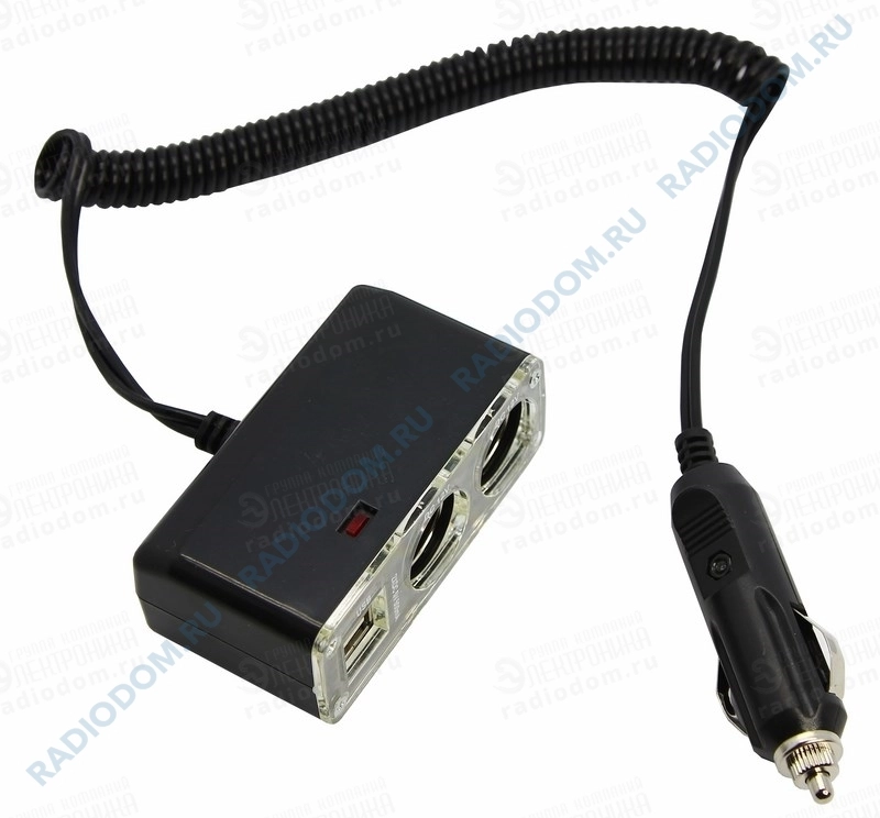 Разветвитель автоприкуривателя 2гн + 2хUSB 5V 1A витой шнур 1.5М REXANT предназначен для подключения нескольких электронных устройств к бортовой сети через одну авторозетку, а также портативных устройств потребляющих 5В через 2 гнезда USB. Таким разветвителем возможно подключать 2 любых электронных устройства (видеорегистратор, зарядное устройство, радар-детектор, навигатор, автохолодильник, телевизор, автокомпрессор, автопылесос и т.д.), потребляющие постоянный ток (DC) напряжением 12В. Кроме того, возможно подключать различные автомобильные аксессуары (мобильный телефон, MP3-плеер, автомобильный комплект «hands free» и т.д.). Корпус штекера, как и модуль гнезд, изготовлен из ударопрочного пластика. Шнур спиралевидной витой формы обладает высокой износостойкостью, компактным размером и является более удобным в использовании, чем прямой. Двойник гнезда прикуривателя позволит исключить вмешательство в штатную электропроводку, тем самым, не нарушая гарантию на новый автомобиль. Основные характеристики: