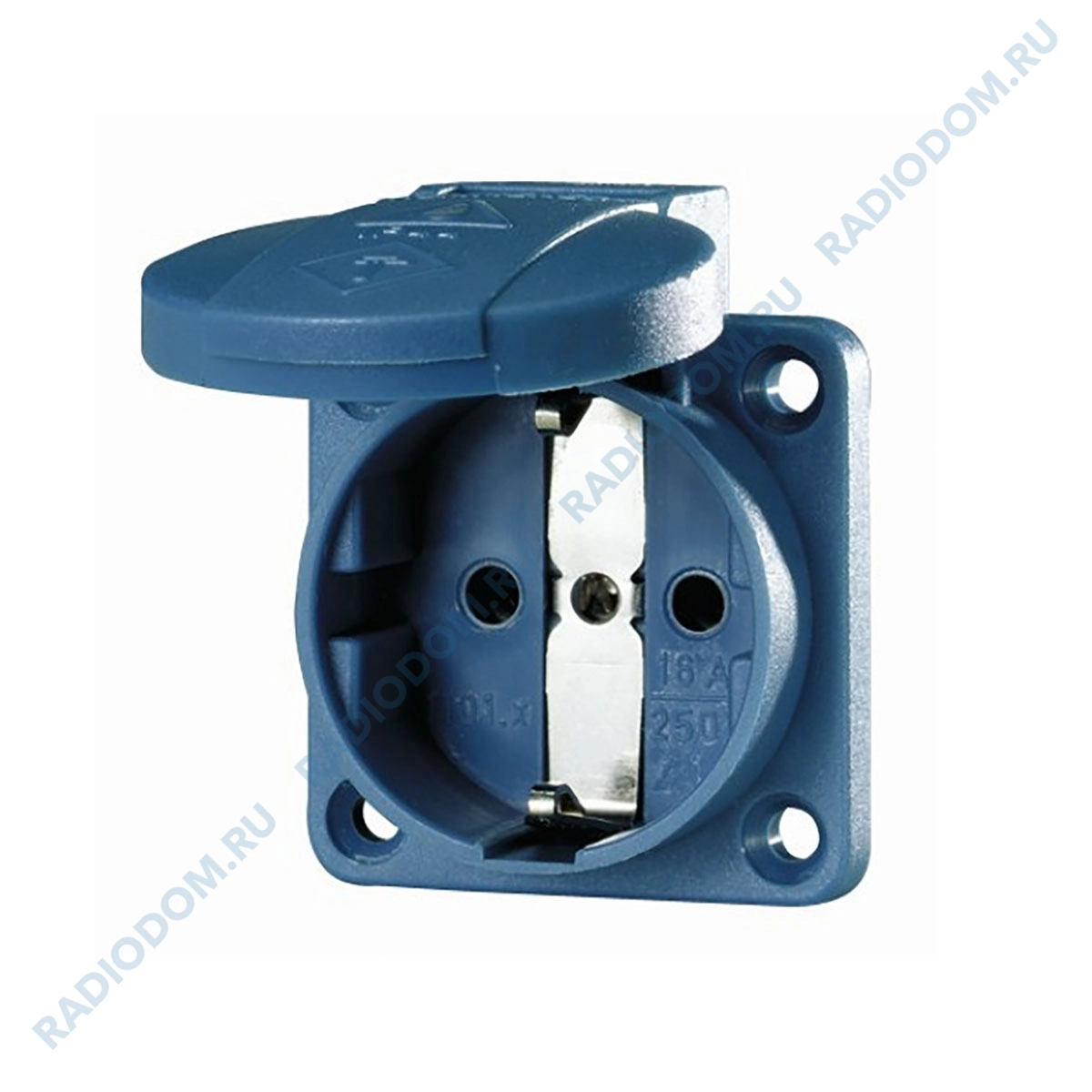 Розетка панельная 16А 2Р+E SCHUKO синяя IР54 230В 3 безвинтовые (пружинные) клеммы.