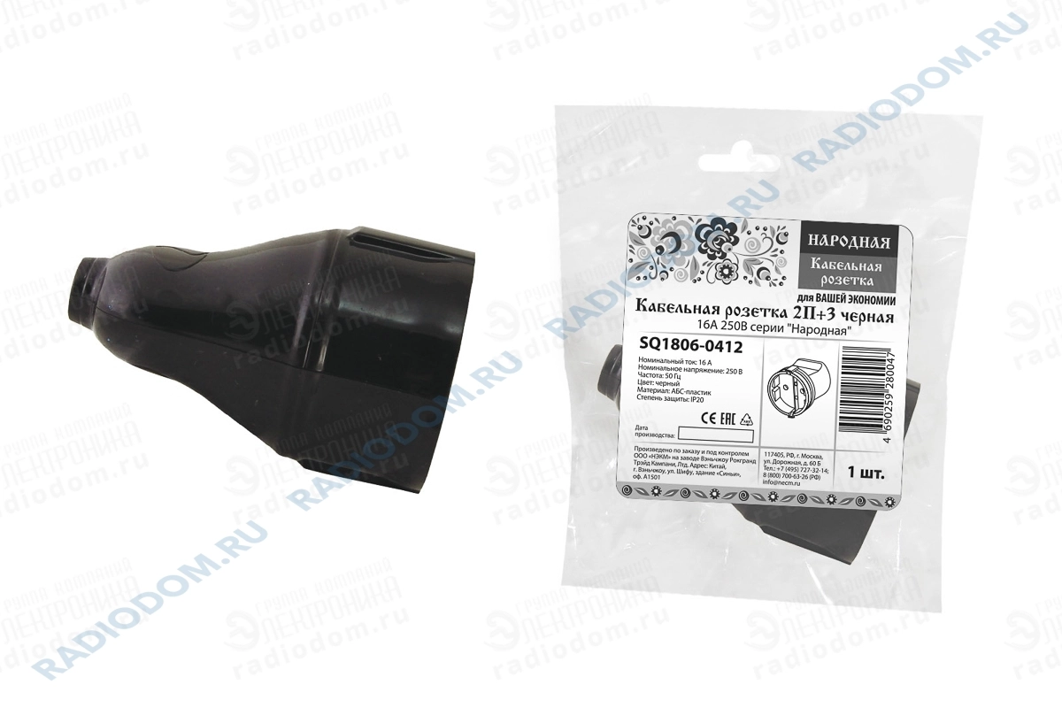 Розетка кабельная с заземлением 16А 250В SQ1806-0412 TDM ELECTRIC