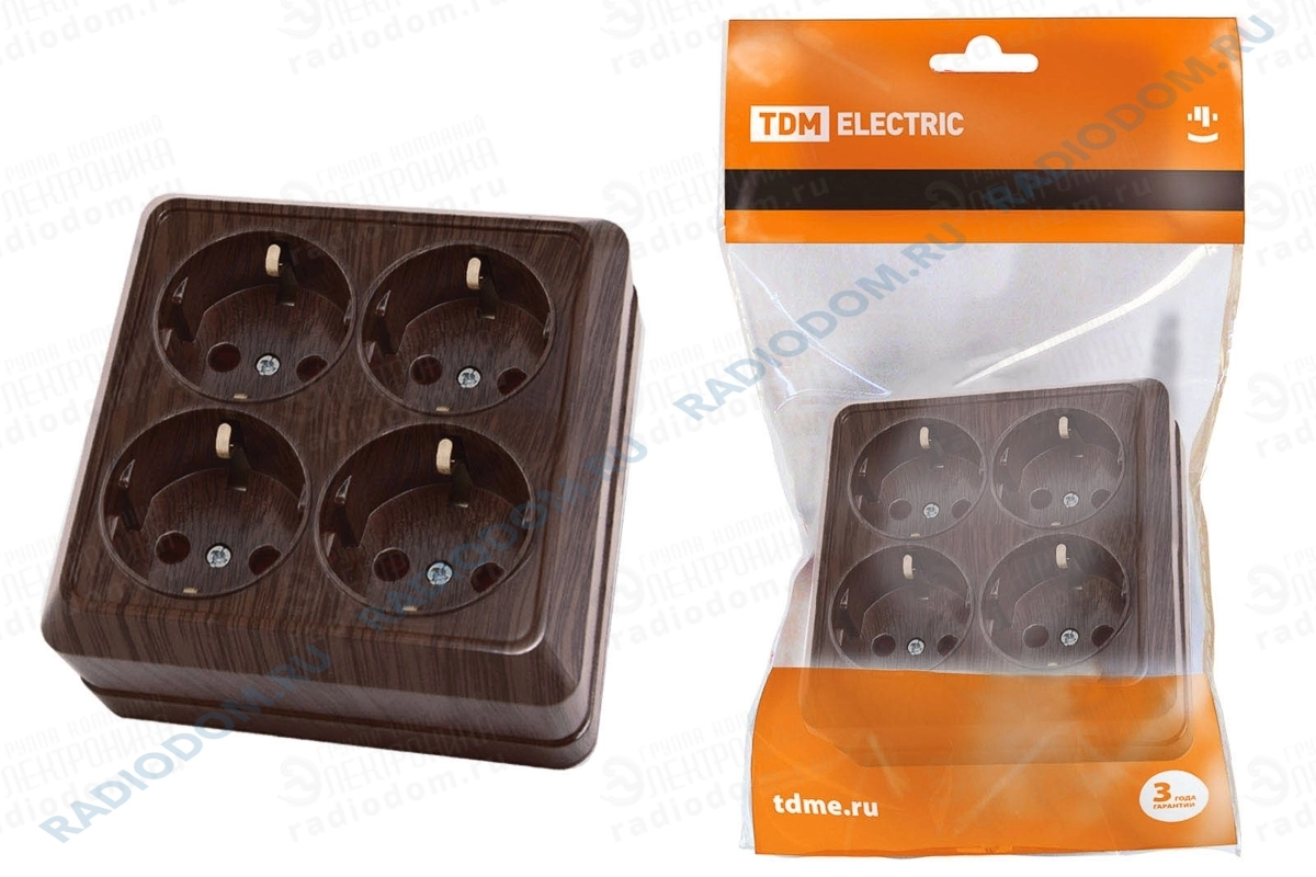 Розетка открытый монтаж четырехконтактная бук Ладога TDM ELECTRIC
